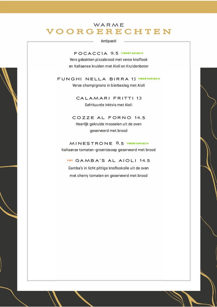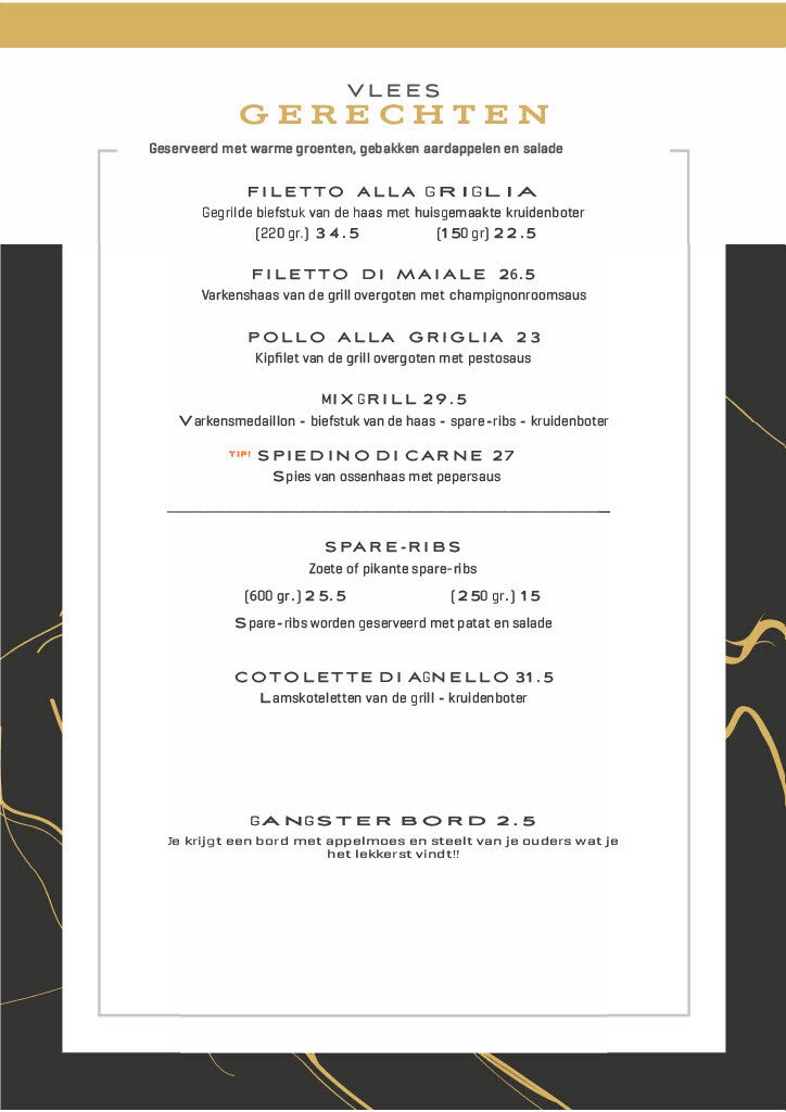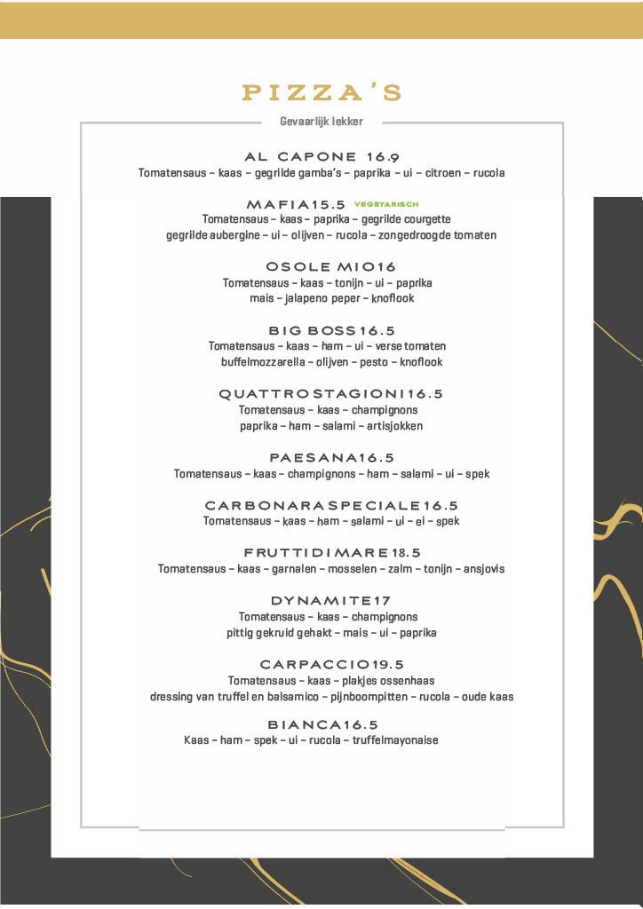 Onze menukaart.